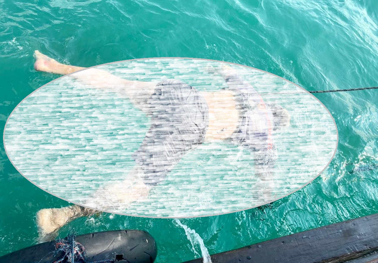 “Saya sedang angkat jaring, sekitar jam 07.00 WIB, tiba-tiba melihat mayat telungkup mengenakan celana pendek hitam dalam posisi mengapung,” ungkap Encek.