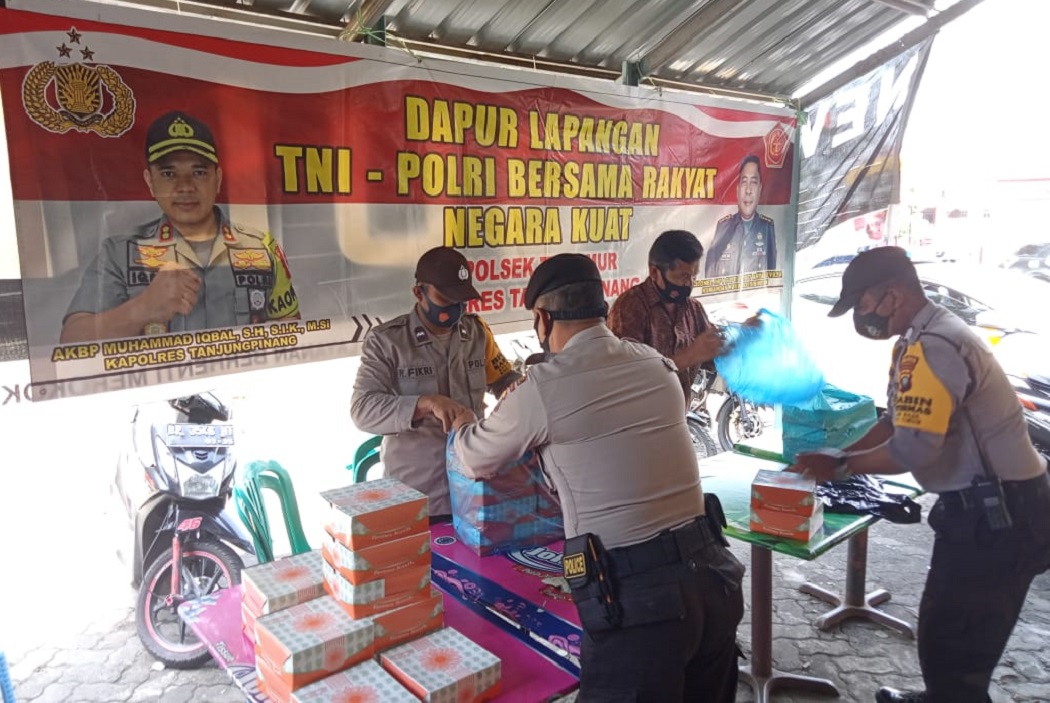 Kegiatan yang dipimpin langsung Kapolsek Tanjungpinang Timur AKP Firuddin dan diikuti oleh personil Polsek Tanjungpinang Timur ini dilaksanakan di Komplek Bintan Center, tepatnya di depan Mapolsek Tanjungpinang Timur dan selanjutnya makanan dari hasil pelaksanaan dapur lapangan berupa nasi dan lauknya dibungkus dan dibagikan kepada masyarakat yang secara langsung terdampak dan mengalami kesulitan dimasa pendemi Covid 19 seperti pemulung, tukang parkir, pekerja bangunan dan tukang ojek.