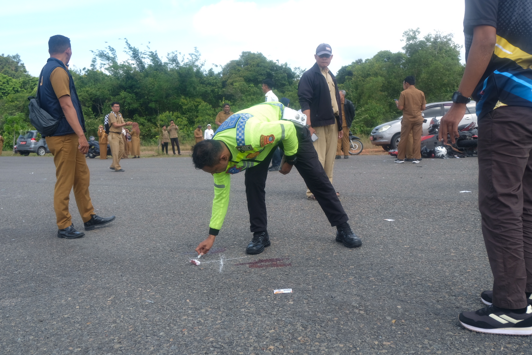 Saat di lokasi kejadian, tepatnya di simpang empat Stadion Gelora Sri Tribuana muncul motor Yamaha Nmax BP 5443 WI dari arah Kanwil Ditjen Perbendaharaan Kepri, hendak menuju kantor Gubernur Kepri.