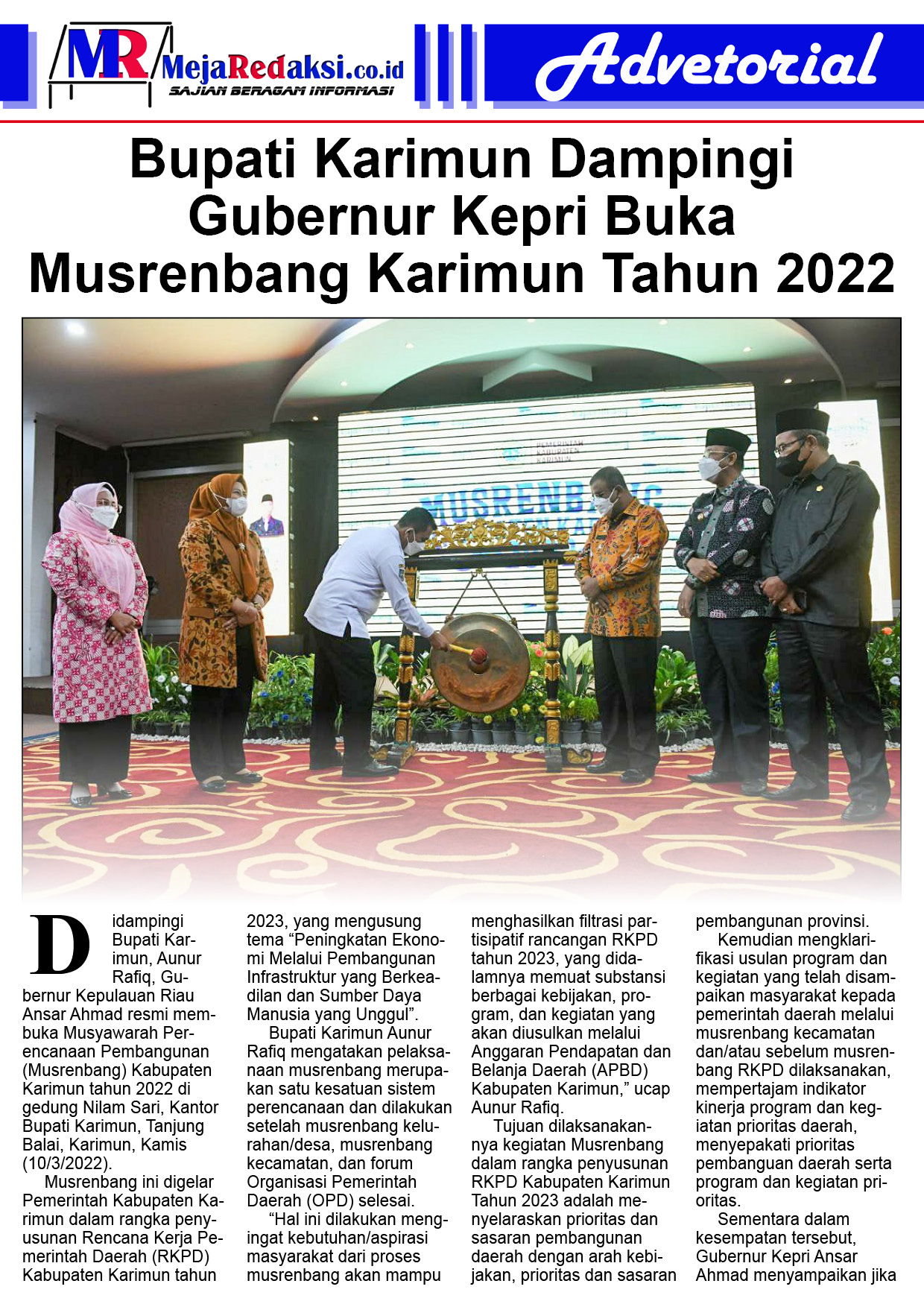 Bupati Karimun Dampingi Gubernur Kepri Buka Musrenbang Karimun Tahun 2022Redaksi10 Maret 20228 April 2022Advertorial & Galery Posting TerkaitWabub Karimun Tinjau Harga Kebutuhan Pokok Jelang RamadhanPilot Project Penyelesaian Hukum Melalui MusyawarahPengembangan Bandara Raja Haji Abdullah di KarimunBupati Aunur Rafiq Bakal Berikan Pelatihan Welder GratisBupati Karimun Berpesan Tingkatkan Mutu PendidikanJangan LewatkanHUT KORPRI 2025 di Kepri Jadi Ajang Penguatan Integritas ASN Lewat Senam & Jalan SehatMuhammadiyah Perkuat Moderasi Beragama, Gubernur Ansar Apresiasi Kontribusi Besar di KepriKepri Genjot Perluasan FTZ, Gubernur Ansar Dorong Kepastian Regulasi untuk Investasi Bintan–KarimunDewi Ansar Tegaskan TP-PKK Jadi Motor Utama Wujudkan Kepri Bebas StuntingWAAW 2025 di Kepri: BPOM dan Pemprov Perkuat Aksi Lawan AMRPemprov Kepri Perkuat APIP untuk Kawal Pengawasan PSN 2025