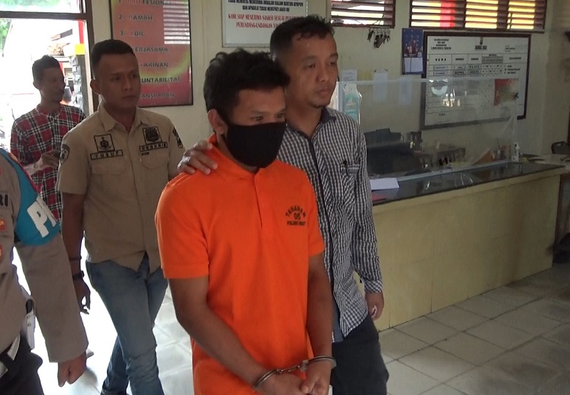 Tersangka berinisial ERA alias R (32) usai menjalani pemeriksaan di Polsek Bintan Utara Tanjung Uban Kabupaten Bintan. (Foto: Polsek Bintan)