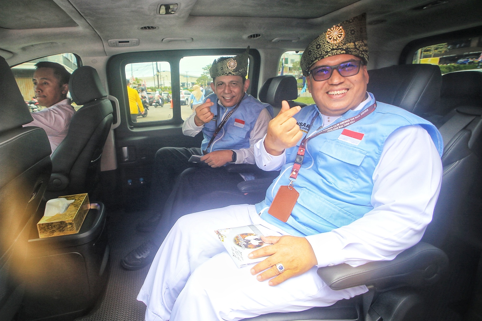 Ansar Ahmad dan Nyanyang usai mendaftar ke Kantor KPU Kepri, di Tanjungpinang, Rabu (28/8/2024). (Foto: Andri)