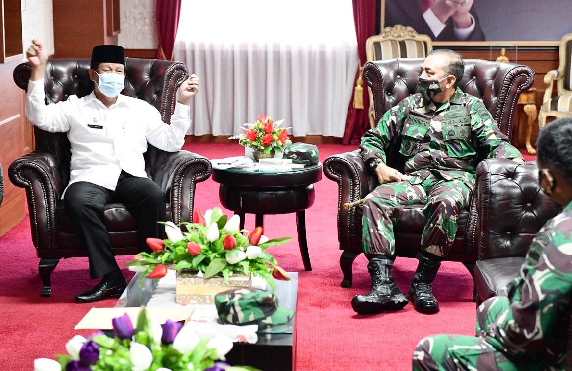 Tanjungpinan, MR- Plt Gubernur Kepri H Isdianto menerima kunjungan silaturahmi Komandan Korem 033/Wira Pratama Kolonel Inf Harnoto di Ruang Kerjanya Kantor Gubernur Dompak, Tanjungpinang, Rabu (29/4) petang. Silaturahmi ini membicarakan banyak hal, mulai masalah pandemi covid19, upaya mempererat kebersamaan dan tentang situasi terkini Kepri.