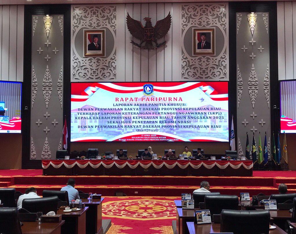 Tanjungpinang,mejaredaksi – Dewan Perwakilan Rakyat Daerah (DPRD) Kepulauan Riau (Kepri) menetapkan sejumlah rekomendasi strategis terhadap Laporan Keterangan Pertanggungjawaban (LKPj) Kepala Daerah Tahun Anggaran 2025 dalam Rapat Paripurna penyampaian Laporan Akhir Panitia Khusus (Pansus) di Ruang Rapat Paripurna, Jumat (17/4/2026).