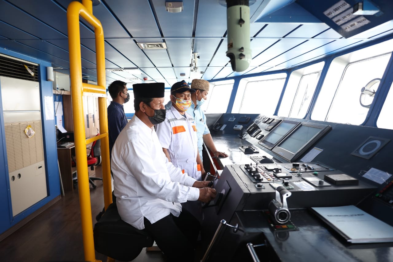Didampingi Kepala Dinas Perhubungan Provinsi Kepri Junaidi, Isdianto memantau langsung kondisi kapal yang Gros Tone 1500 dengan kapasitas 400 penumpang itu.