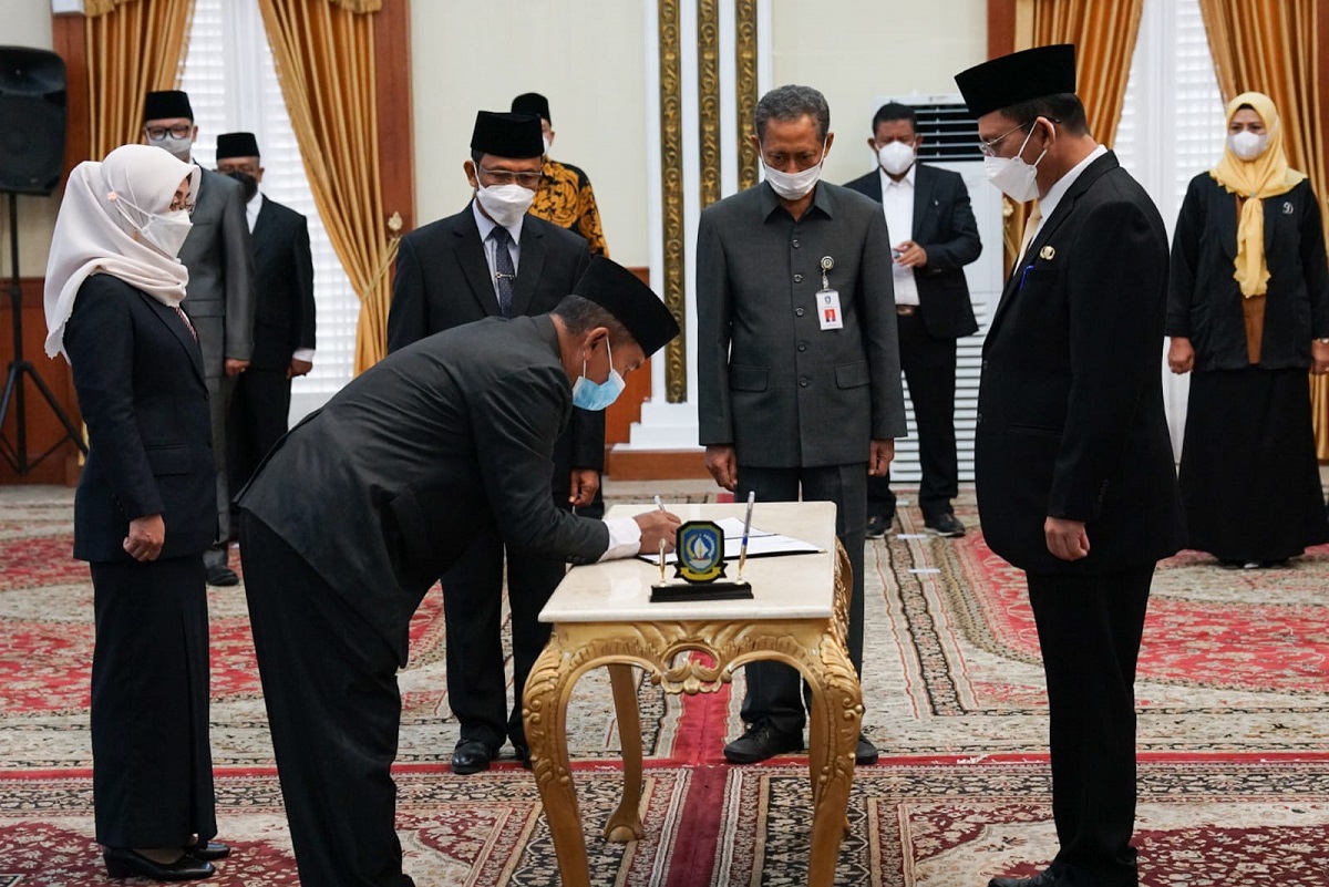 Tanjungpinang, MR – Gubernur Kepulauan Riau (Kepri), Ansar Ahmad melantik enam pejabat eselon II dilingkungan Pemerintah Provinsi (Pemprov) Kepri dan satu orang pejabat fungsional Ahli Utama, di Gedung Daerah Tanjungpinang, Rabu (15/9/2021).