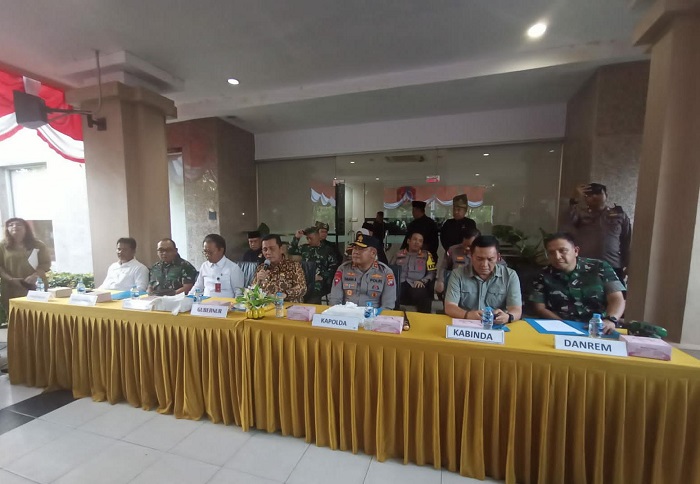 Batam, MR – Gubernur Kepri Ansar Ahmad bersama seluruh Forkopimda Kepri, termasuk Kepala BP Batam Muhammad Rudi menggelar konferensi pers di Graha Kepri, Kota Batam, Selasa (12/9/2023).