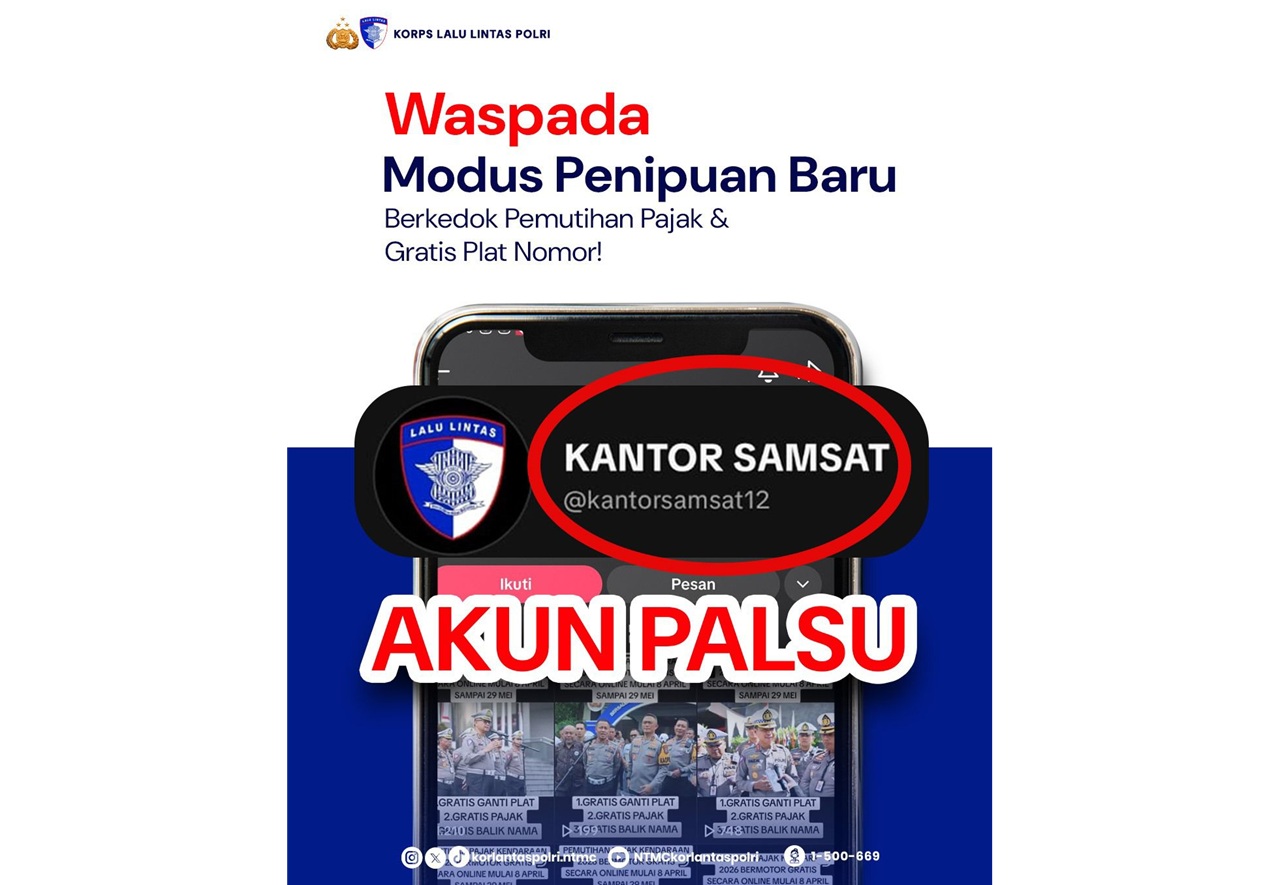 Informasi menyesatkan itu muncul dari akun TikTok @kantorsamsat12 dengan judul “Pemutihan pajak kendaraan 2026 bermotor gratis secara online mulai 8 April sampai 29 Mei.” Unggahan tersebut menjanjikan berbagai fasilitas, seperti gratis ganti pelat nomor, bebas pajak kendaraan, hingga tanpa biaya balik nama.