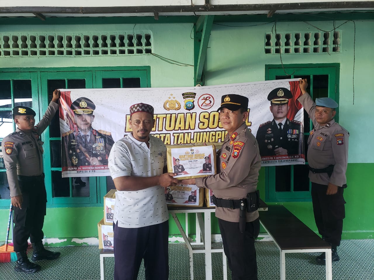 Kegiatan bansos tersebut juga dibantu oleh Ketua Ranting Bhayangkari Polsek Tanjungpinang Barat Ny. Bettie Lisdaryani Andri beserta pengurus Bhayangkari Polsek Tanjungpinang Barat.