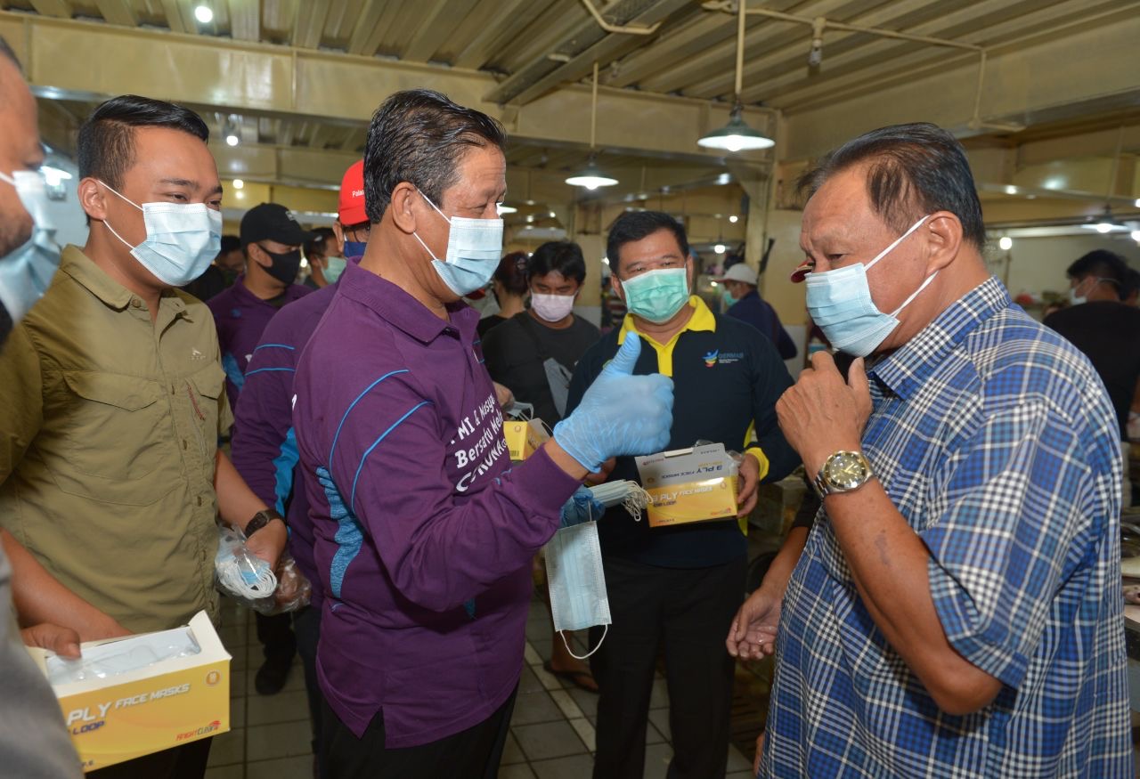 “Terima kasih Pak (Plt) Gubernur. Payah sekarang nyari masker ini,” kata seorang pedagang ikan di Pasar Mitra Raya.