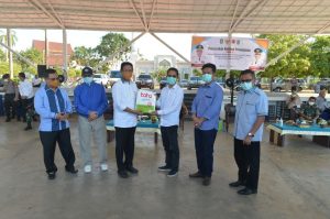BATAM,MR – Plt Gubernur Kepri, H. Isdianto menyerahkan bantuan keuangan untuk penanganan Covid-19 kepada Pemerintah Kota Batam dan Alat Pelindung Diri (APD) pada rumah sakit se-kota Batam, di Dataran Engku Putri, Batam, Rabu (25/3).