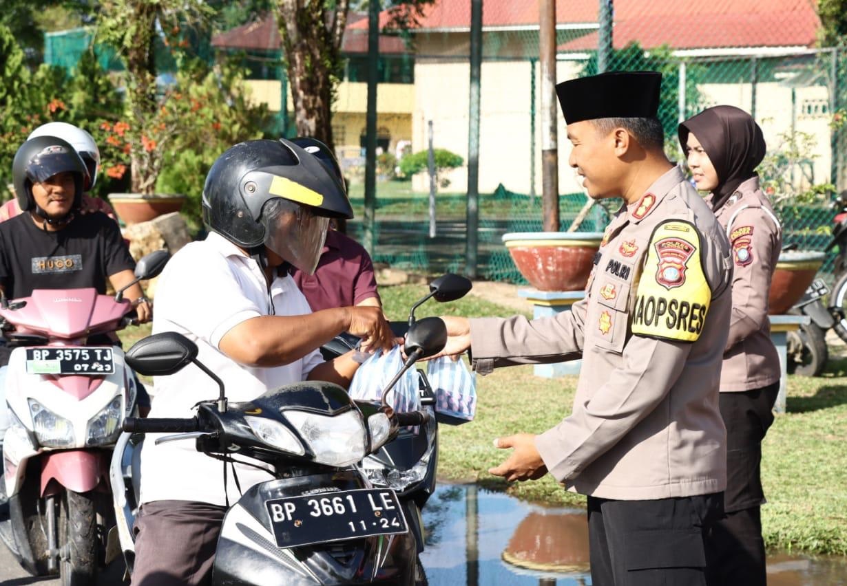 Kapolres Lingga AKBP Fadli Agus mengungkapkan bahwa bagi-bagi takjil ini merupakan wujud kepedulian keluarga besar Polres Lingga kepada masyarakat yang melaksanakan Ibadah Puasa.