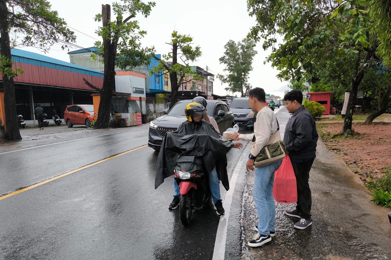 Ratusan paket takjil dibagikan di sepanjang Jalan Sidorejo hingga Jalan Raja Haji Fisabilillah, kilometer 5, Jumat (14/3/2025) sore ditengah hujan gerimis.