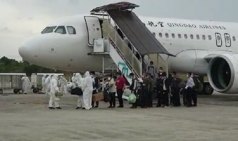 Tanjungpinang, MR– Sebanyak 150 Tenaga Kerja Asing (TKA) asal China yang akan bekerja di PT Bintan Alumina Indonesia (BAI) tiba di Bandara Raja Haji Fisabililah (RHF) Tanjungpinang. Ratusan TKA tiba dengan pesawat Qingdao Airline, Jumat (2/10/2020).