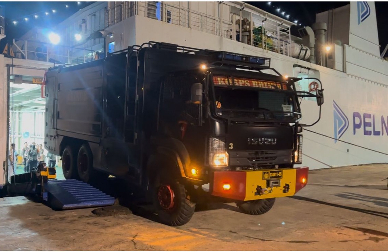 Setibanya di Belawan, Polri menurunkan 220 personel Korbrimob Polri yang dipimpin DPP Danyon Gas Korbrimob Polri, Kompol Teguh Widodo. Penurunan pasukan ini menjadi bagian dari skema distribusi bertahap yang telah direncanakan, mengingat kapal juga dijadwalkan singgah di Pelabuhan Lhokseumawe dan Padang.