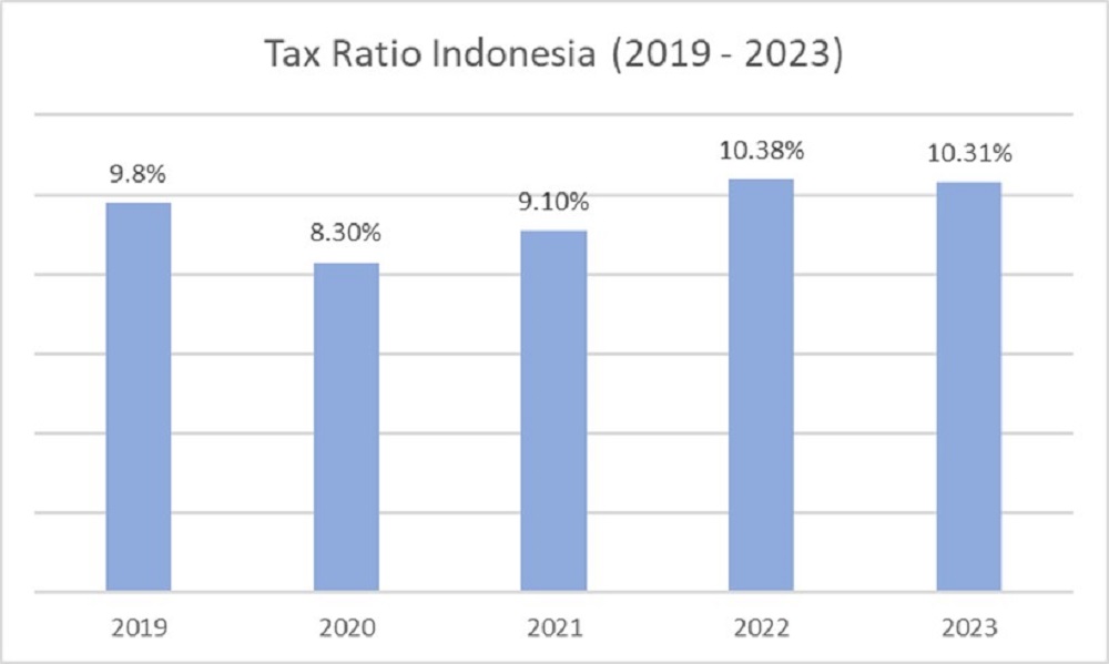 Angka ini merupakan lonjakan yang sangat besar mengingat tax ratio terakhir Indonesia pada tahun 2023 hanya berada di angka 10,31%.