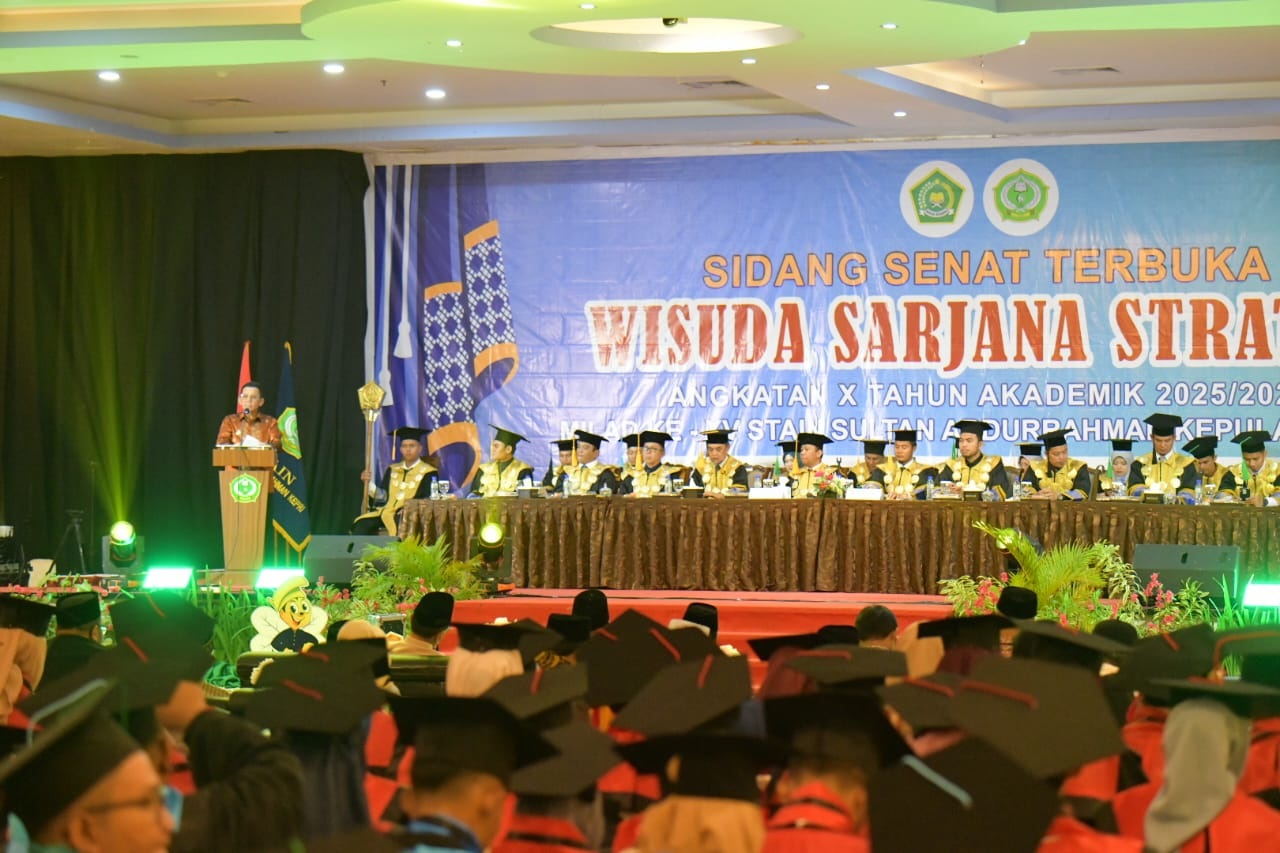 Tanjungpinang, mejaredaksi – Sidang Senat Terbuka Wisuda S1 Angkatan X sekaligus Milad ke-15 STAIN Sultan Abdurrahman Kepri berlangsung meriah di CK Tanjungpinang Hotel & Convention Centre, Sabtu (6/12/2025). Acara ini turut dihadiri Gubernur Kepulauan Riau, Ansar Ahmad, yang secara resmi mengukuhkan 246 wisudawan dari 11 program studi.