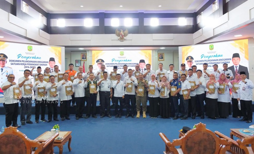 Tanjungpinang, mejaredaksi – Penjabat (Pj) Walikota Tanjungpinang, Hasan, S.Sos, melaksanakan penyerahan Dokumen Pelaksanaan Anggaran Satuan Kerja Perangkat Daerah (DPA-SKPD) APBD Tahun 2024 kepada Kepala Perangkat Daerah di Kantor Walikota, Rabu (10/1/2024).