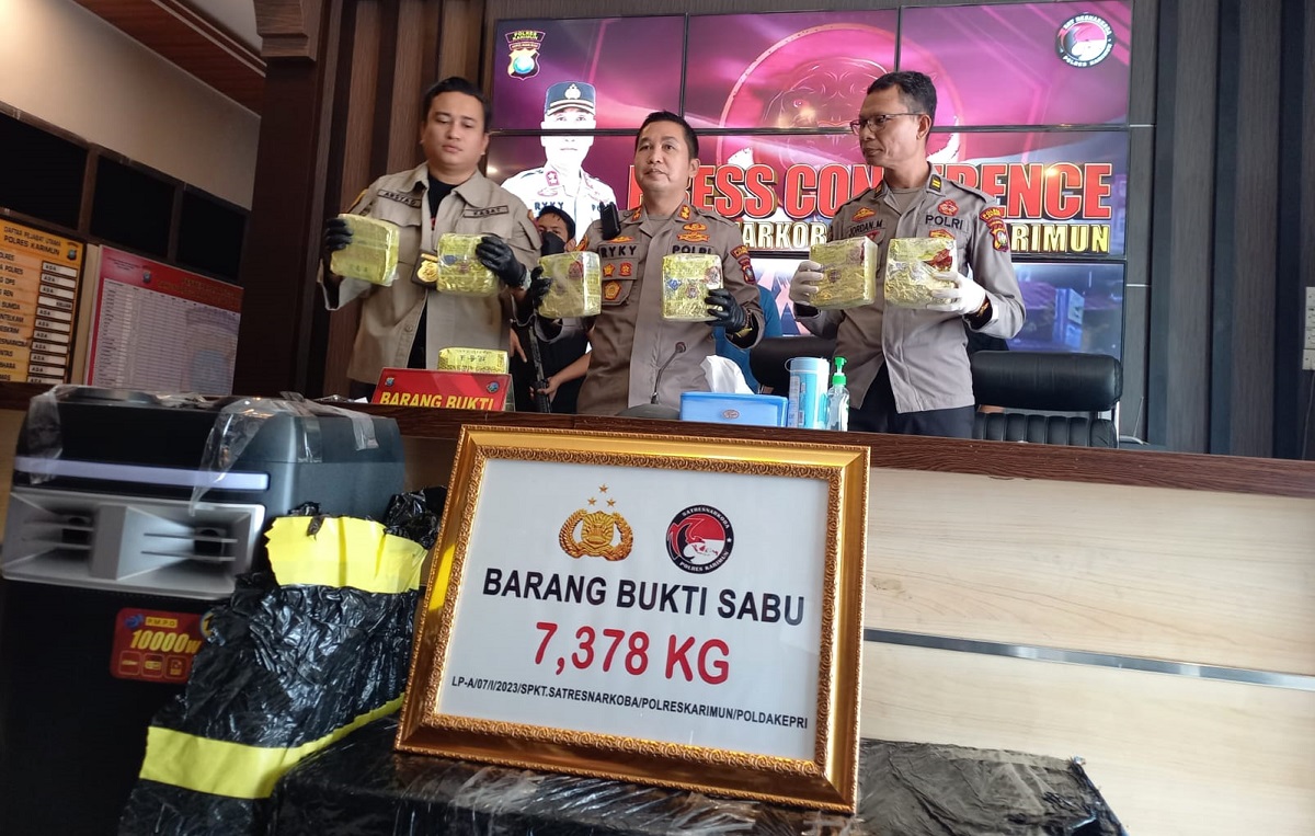Karimun, MR – Polres Karimun berhasil menggagalkan penyelundupan narkoba jenis sabu seberat 7,3 kilogram jaringan internasional di Kabupaten Karimun, Provinsi Kepulauan Riau (Kepri).