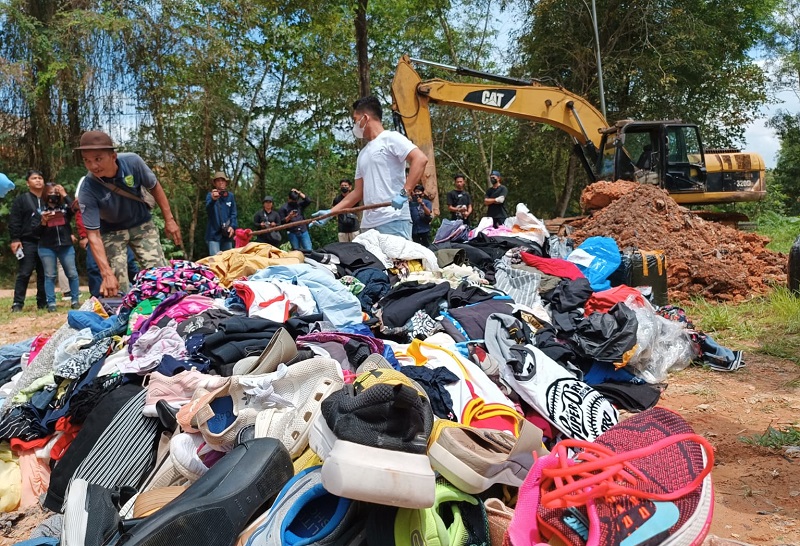 Kapolresta Tanjungpinang Kombes Pol. H. Ompusunggu, mengatakan, belasan koli pakaian dan sepatu bekas ini dimusnahkan oleh pemiliknya langsung di TPA, Ganet.