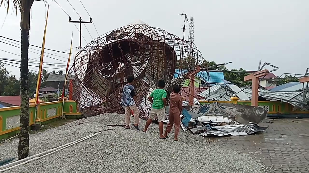 Tidak hanya mengakibatkan robohnya kubah masjid, angin puting beliung juga mengakibatkan reruntuhan masjid berserah hingga ke rumah warga yang berada di samping masjid.