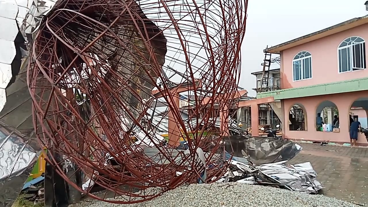 Kencangnya tiupan angin menyebabkan kubah Masjid Al Falah terlempar cukup jauh dari bangunan utama masjid.