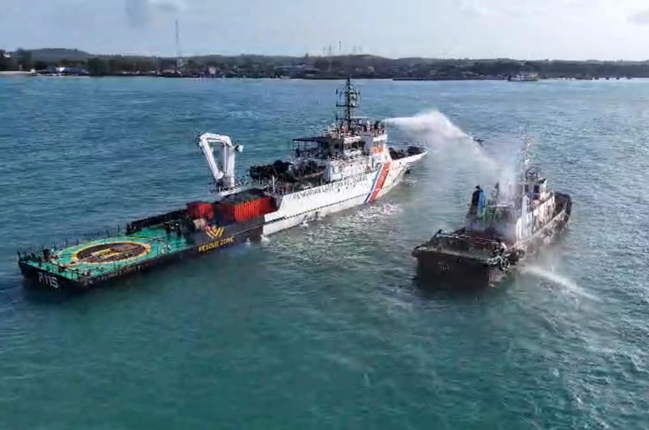 KN Sarotama menjadi kapal pertama yang tiba di lokasi dan berhasil memadamkan api di lambung kapal tugboat. Sementara itu, proses evakuasi kru dilakukan cepat dan terkoordinasi.