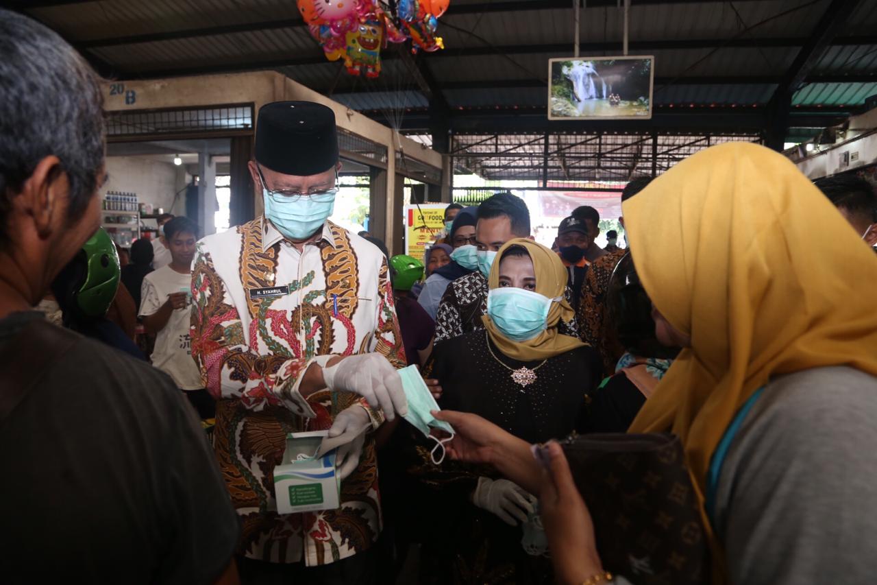 TANJUNGPINANG,MR – Mengantisipasi penyebaran virus Covid-19 di wilayah Kota Tanjungpinang, Walikota Tanjungpinang, H. Syahrul, S.Pd dan Wakil Walikota Tanjungpinang, Hj. Rahma, S.IPĀ memberikan masker kepada masyarakat dan pedagang di Pasar Bintan Center, Kamis (26/3).