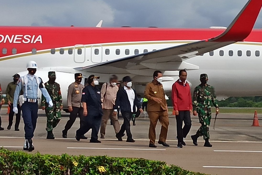Batam, MR – Presiden RI Joko Widodo bersama rombongan tiba di Bandara Internasional Hang Nadim Kota Batam. Kedatangan presiden disambut langsung Gubernur Kepri Ansar Ahmad, Selasa (28/9/2021).