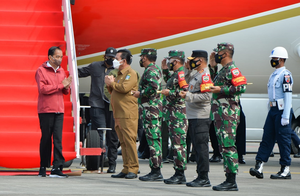 Selain Gubernur Kepri, turut serta menyambut kedatangan orang nomer satu di Indonesia, Pangkogabwilhan 1 Laksdya TNI Muhammad Ali, Pangdam Bukit Barisan Mayjen TNI Hassanudin, Kapolda Kepri Irjen Pol Aris Budiman dan Danrem 033/WP Brigjen TNI Jimmy Ramoz Manalu.