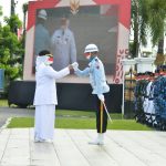 Tanjungpinang, MR – Wakil Gubernur (Wagub) Kepri, Marlin Agustina menjadi Inspektur Upacara (Irup) penurunan bendera dalam rangka Hari Ulang Tahun (HUT) Republik Indonesia tingkat Provinsi Kepulauan Riau ke-76, bertempat di halaman depan Gedung Daerah, Tanjungpinang, Selasa (17/8/2021).